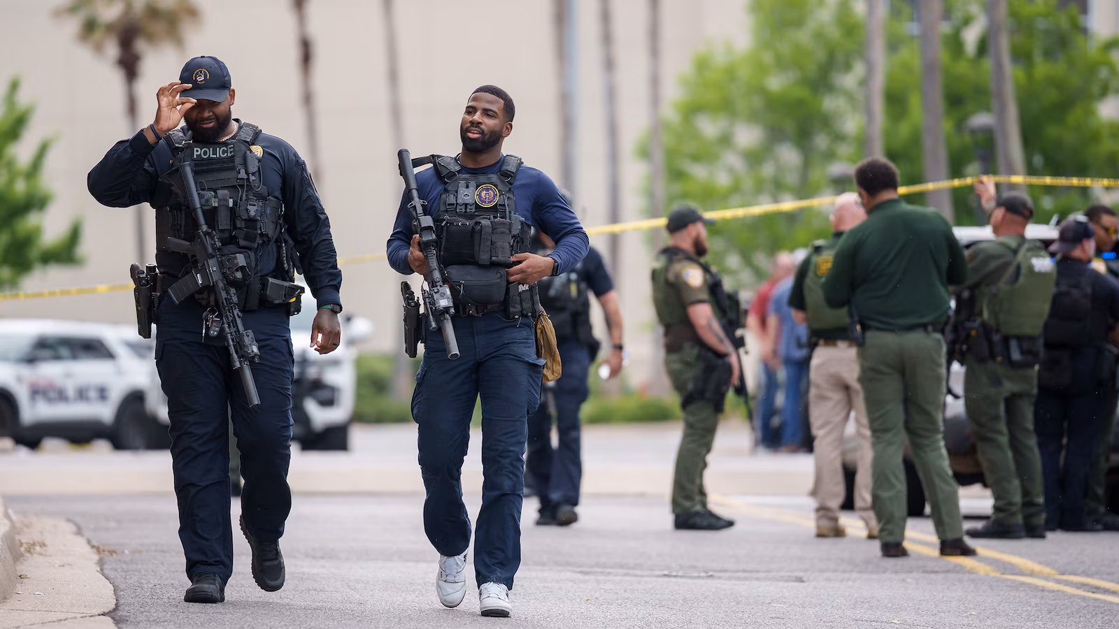 Authorities respond to a shooting at the Mall of Louisiana in Baton Rouge, April 23, 2026.