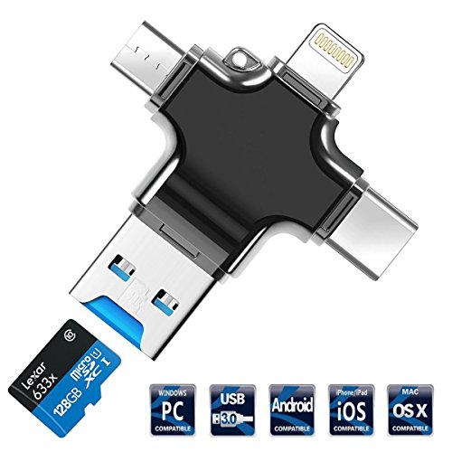*4 in 1 card reader with Lightning/ Type-C/ Micro USB and USB 3.0 connector for iPhone/iPad/Samsung/Android smart phones/Mac/PC.