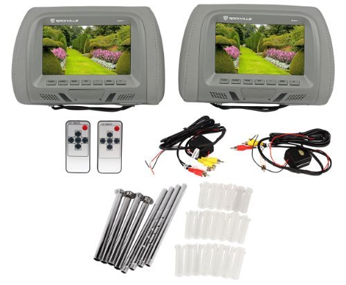 Color: Grey (Also obtainable in Black and Tan)(P) Rockville RHP7-GR S” Gray High Resolution Car Headrest Monitor with Speakers and IR Transmitter. S” High Resolution Pair of Monitors. Universal – Fits Virtually All Vehicles.