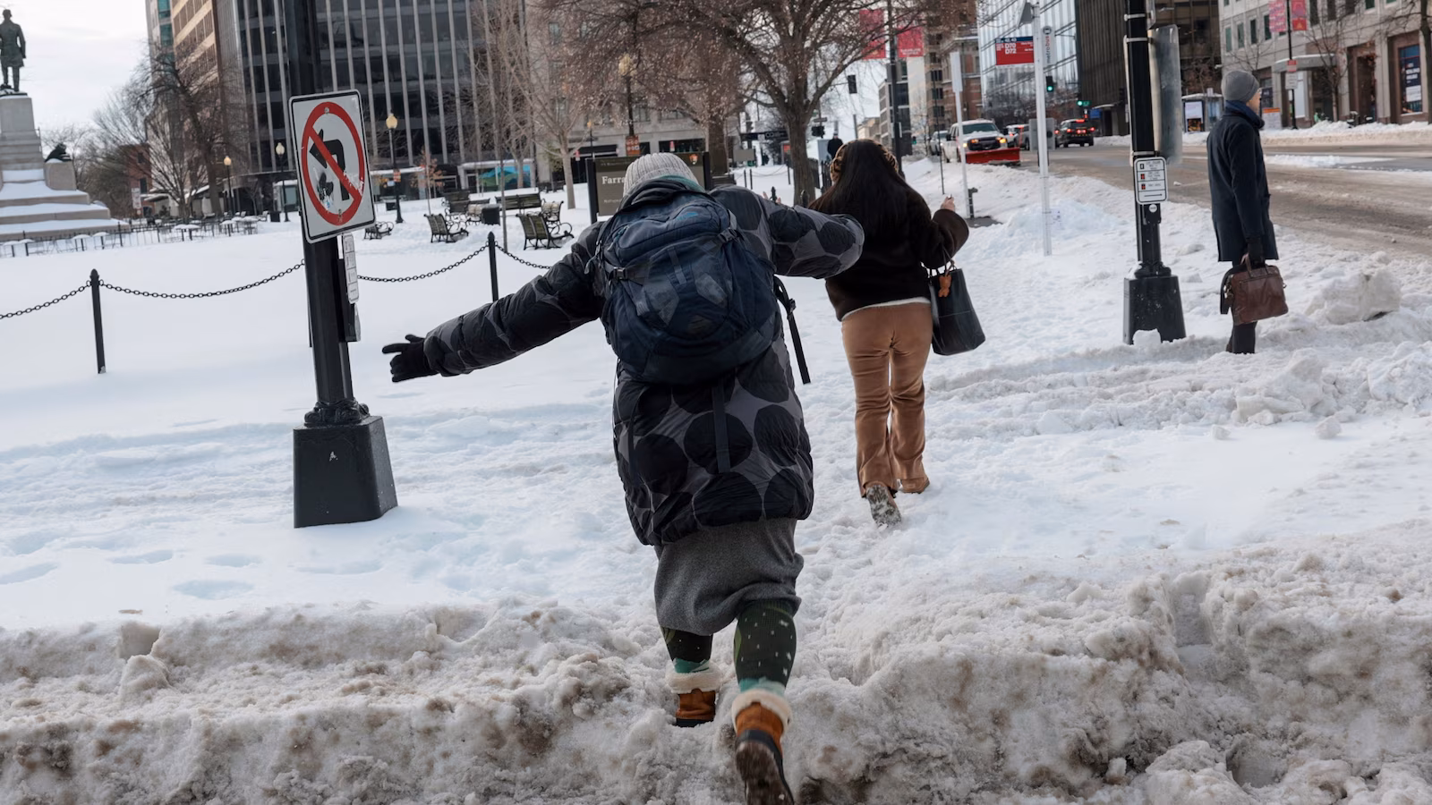 Commuters make their way through mounds of slush in the aftermath of a major winter storm in Washington, D.C., January 26, 2026.