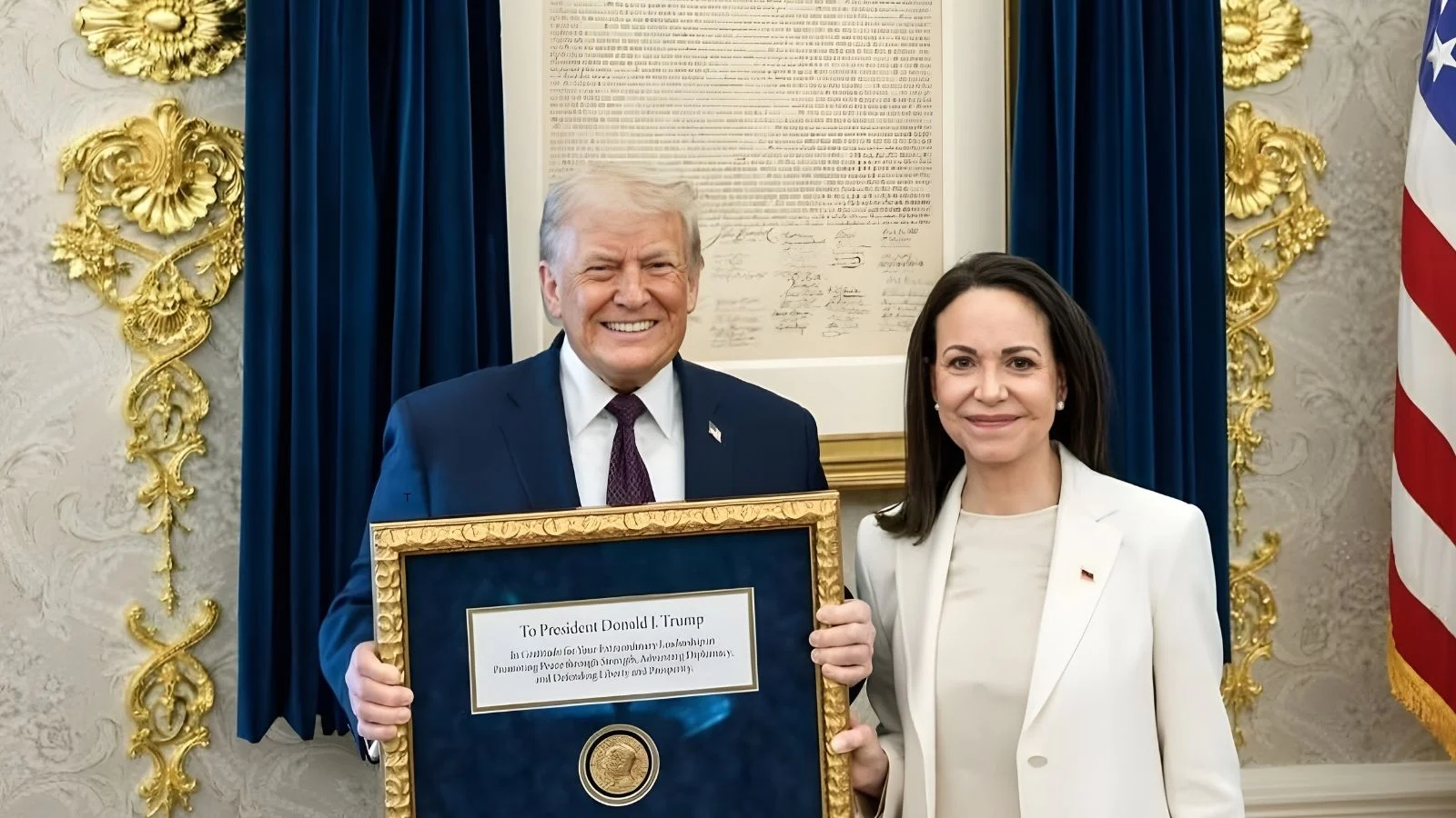 During a visit to the U.S., Machado met with Trump and presented him with her Nobel Peace Prize medal, not the title or the honor, but the actual physical medal, as a gesture of gratitude for his support of her cause.