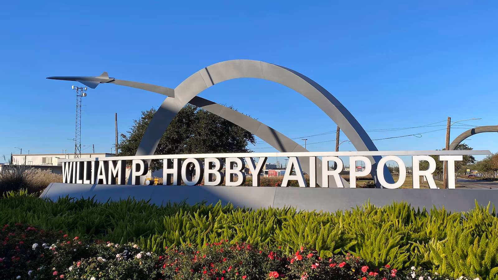 General overall view of the entrance to William P. Hobby Airport (HOU) amid the global coronavirus pandemic, Jan. 4, 2020, in Houston, Tex.