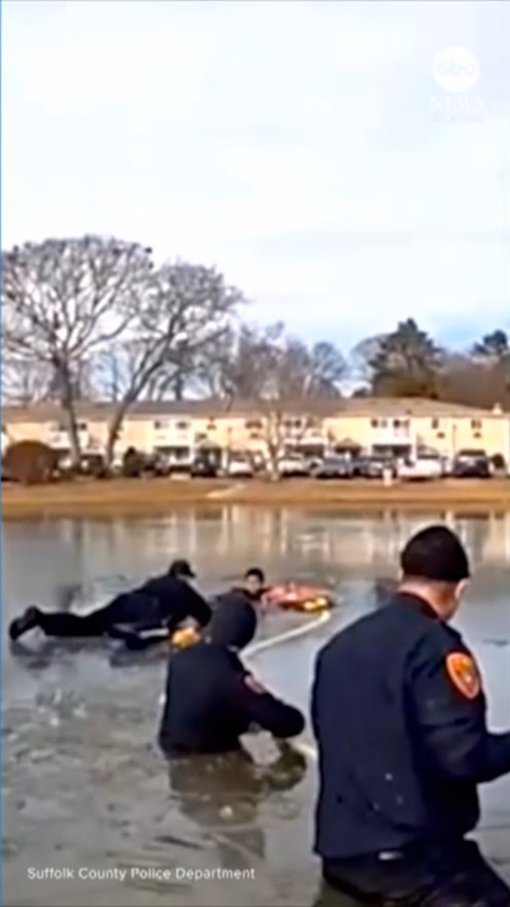 Police officers in Woolwich Township, New Jersey, rescued a 13-year-old boy who fell through thin ice into a freezing pond.