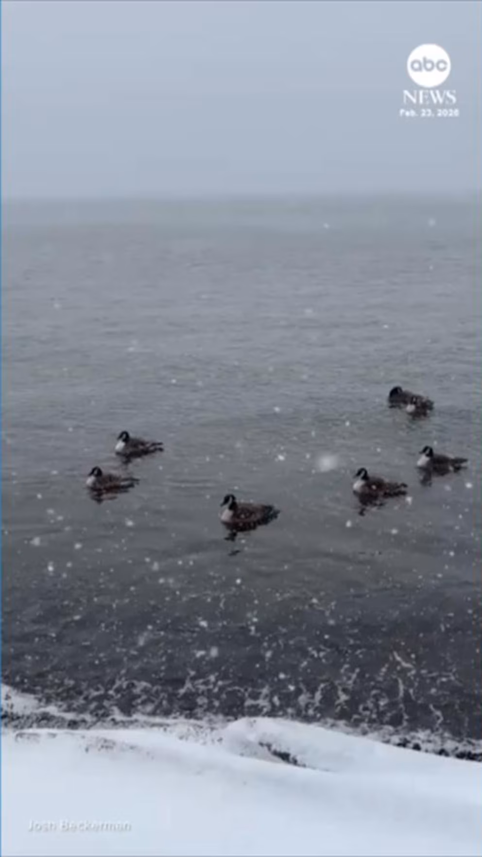 A group of ducks were spotted enjoying a tranquil moment as the snow fell Monday morning in Jersey City.