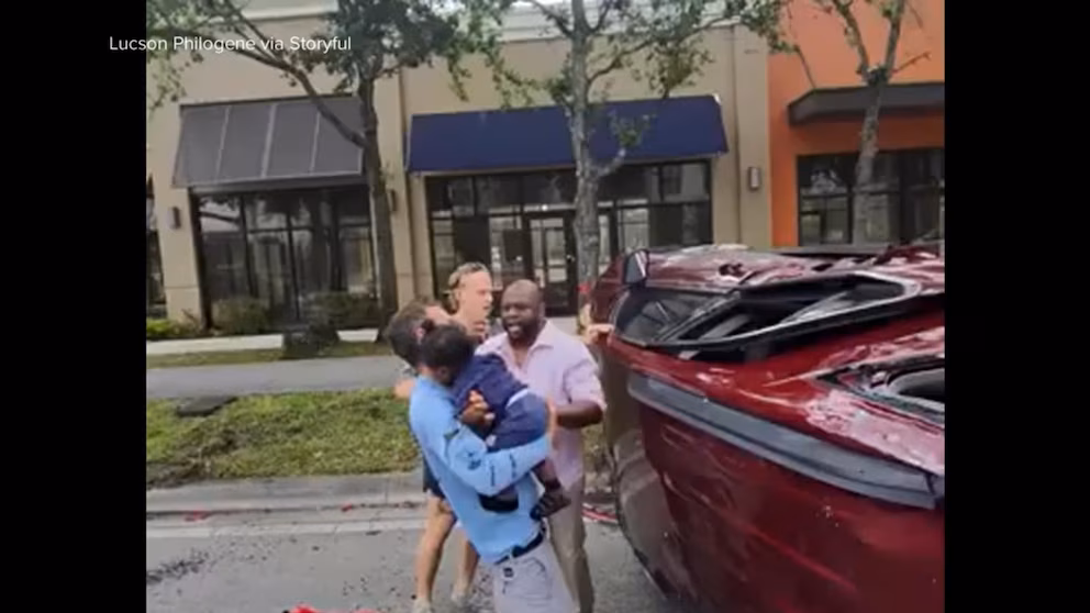 Good Samaritans sprang into action to rescue a a baby, grandmother and father trapped inside a flipped car in Fort Lauderdale.