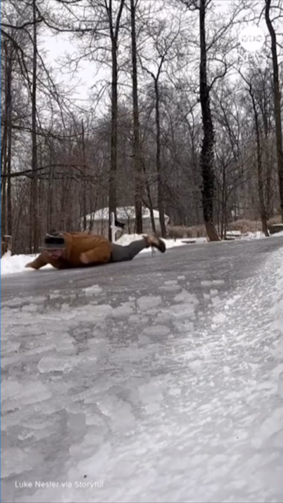 WATCH: Man slides down icy driveway ‘like a penguin on my stomach’