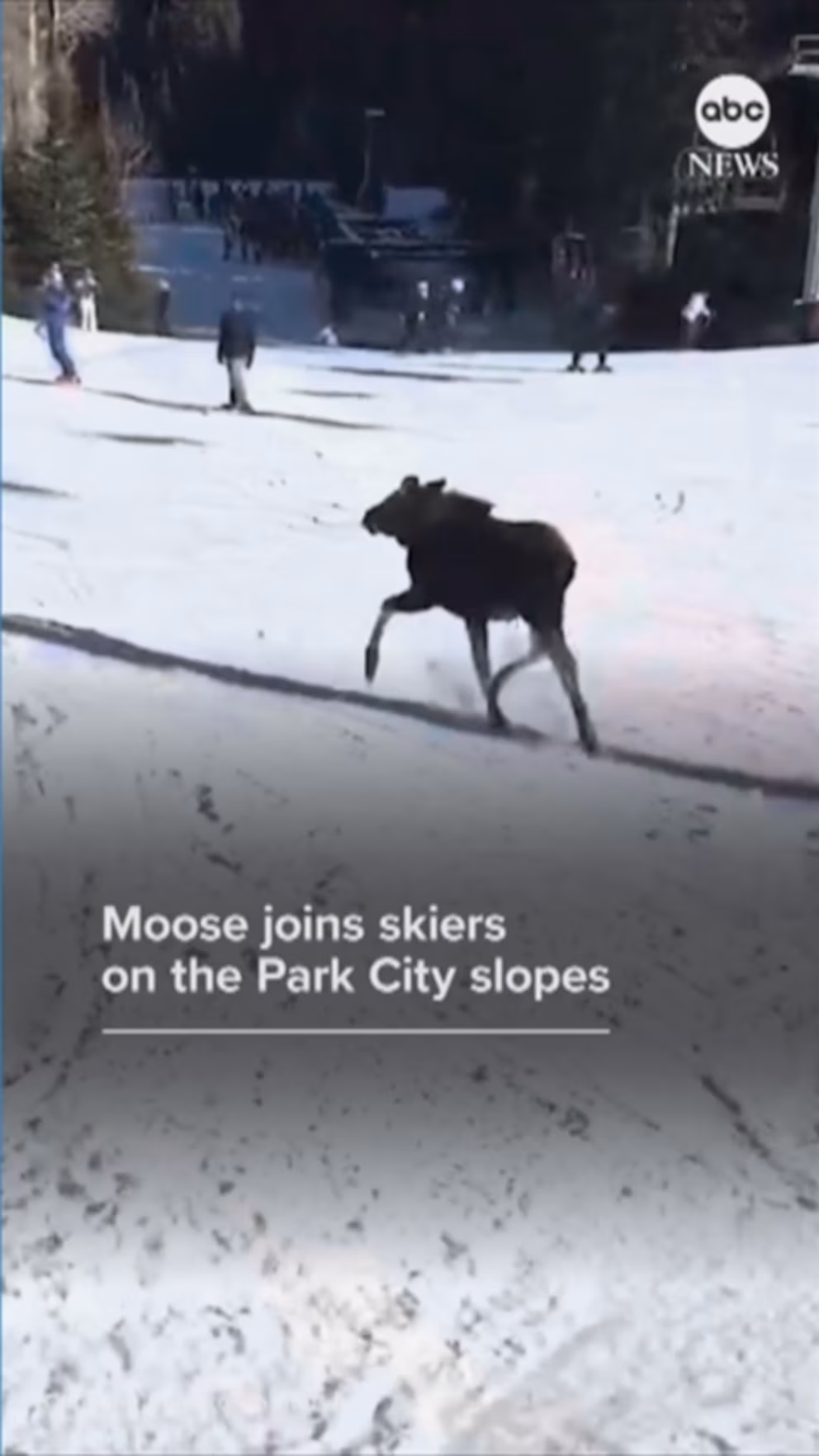 Skiers stopped to admire a young moose galloping down the slopes at Utah’s Park City Mountain Resort.