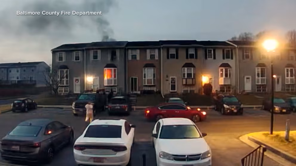 Video captured the moment neighbors risked their lives to save a mother and her two children from a burning home in Baltimore, Maryland.