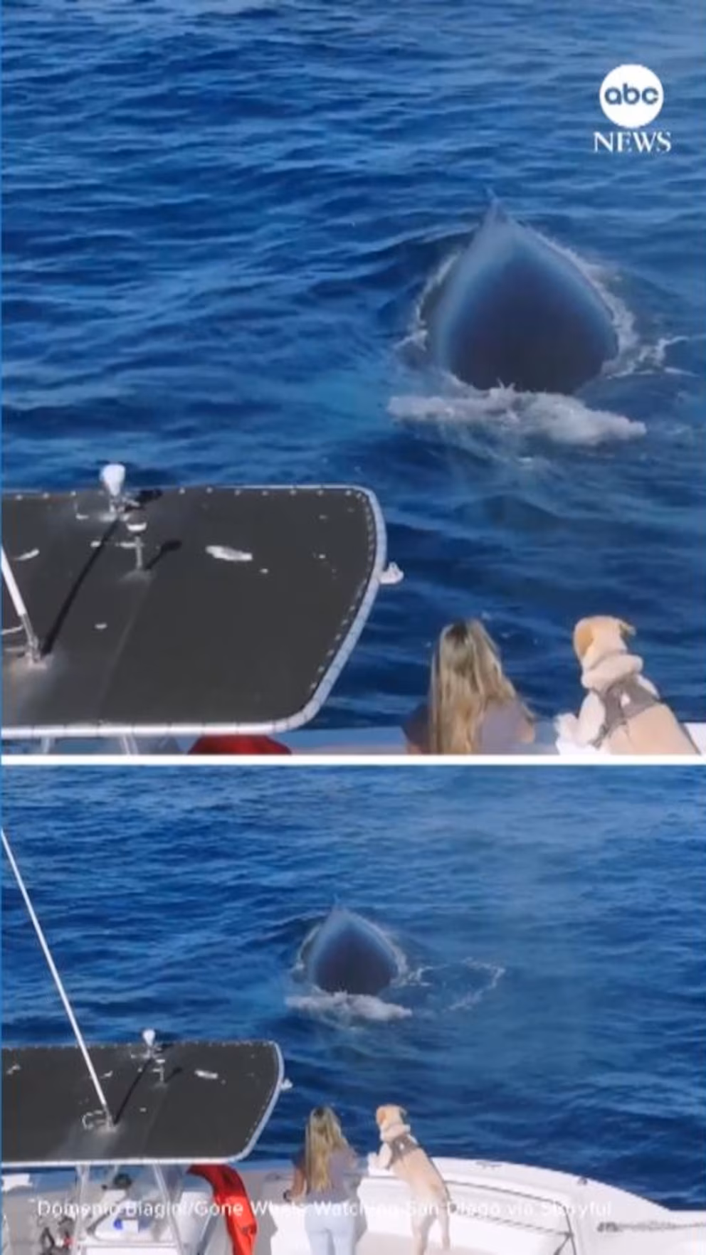 A seafaring rescue pup named Fin experienced a close encounter with whales and dolphins off the coast of San Diego earlier this month.