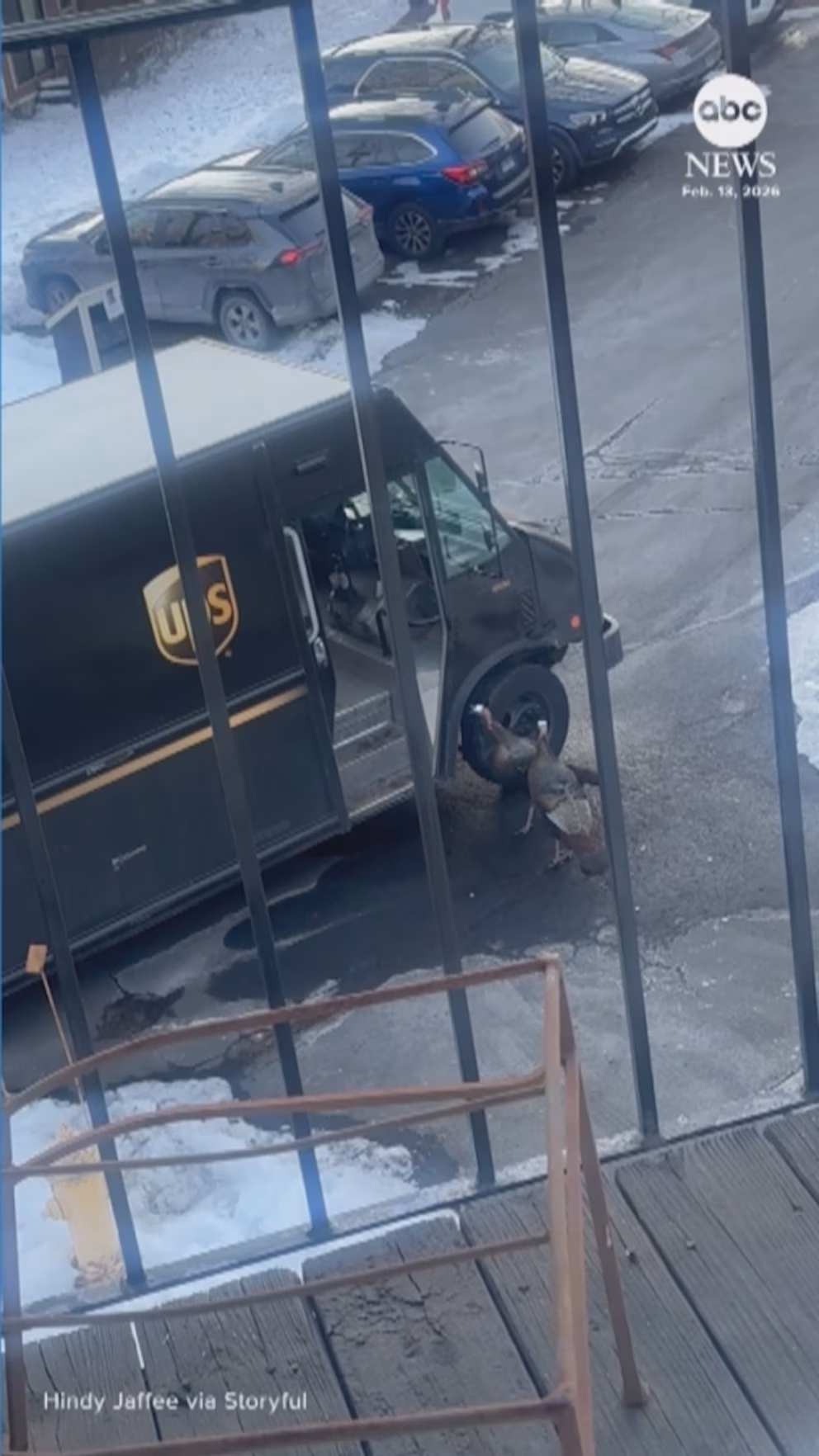This UPS driver was lucky to drive away unscathed after a wild run-in with a couple of turkeys on the streets of Branford, Connecticut.