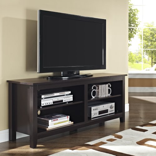 Style and performance mix to provide this modern wooden television console a putting look. the design creates an aesthetic, trendy look crafted from excessive-grade mdf and sturdy laminate. console accommodates most flat-panel tvs as much as 60 in. console additionally offers ample area for a/v elements and different media equipment with adjustable shelving.Accommodates flat panel TVs as much as 60″